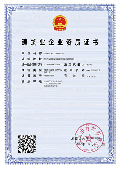 環保工程專業承包叁級;GC2壓力管道安裝資質;施工勞務不分等級;