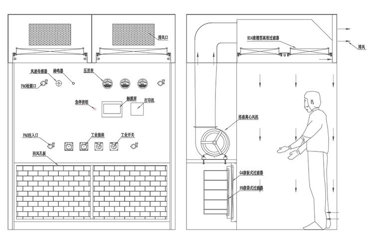 4、雙層負壓設計,避免交叉污染,保護人員安全和背景區潔凈度